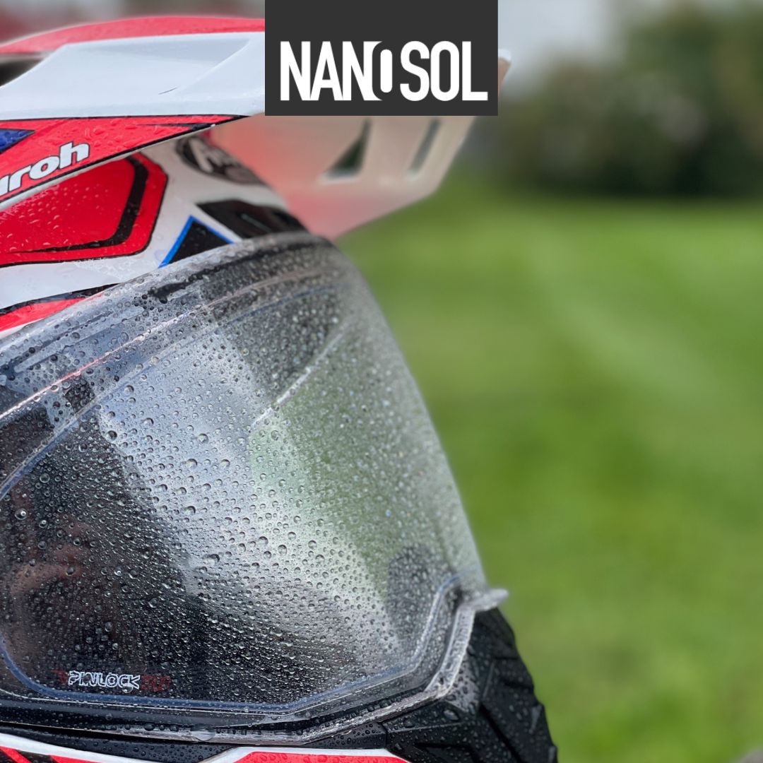 - Při jízdě v dešti kapky okamžitě stékají z hledí a štítu. Jedná se o podobný efekt jako u NANOstěračů.