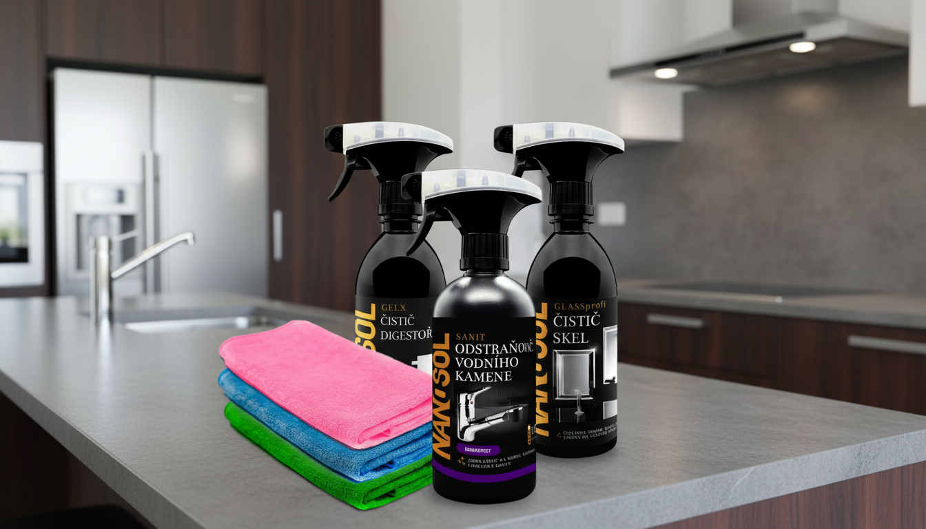 - Odstraňovač vodního kamene SANIT, účinně odstraňuje usazený vodní kámen z kuchyňských spotřebičů, dřezů a kohoutků, čímž zajišťuje jejich dlouhou životnost a dokonalý vzhled.