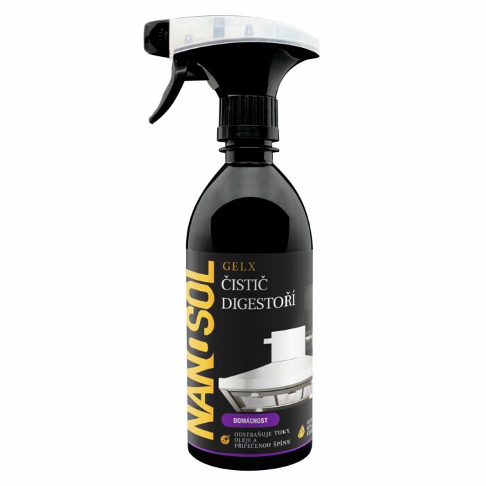 Čistič digestoří GELX: Velmi snadno odstraňuje mastnotu (i tu smíchanou s prachem), přitom neztéká a je 100 % biodegradibilní.