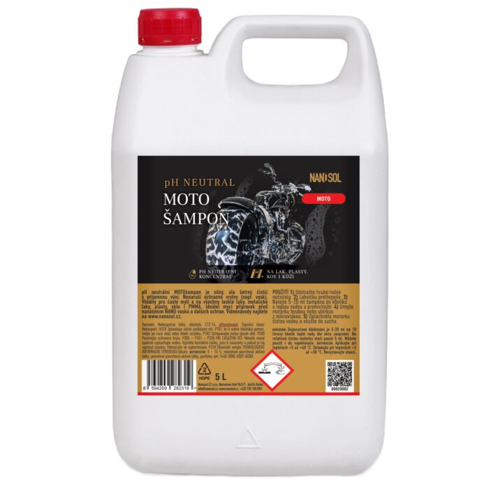 pH neutrální motošampon je silný a přitom šetrný čistič s příjemnou vůní. Díky vyváženému pH nenaruší ochranné vrstvy jako jsou např. Nano vosky. Vhodný pro časté mytí, na všechny lesklé laky, metalické laky, plasty, sklo i PMMA.