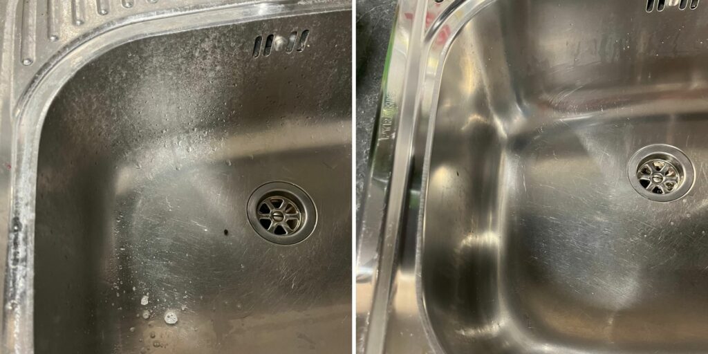 Odstraňovač vodního kamene SANIT odstraňuje vodní kámen, čistí kovové, keramické, skleněné i plastové povrchy. Ideální na vodovodní baterie, dřezy, umyvadla i plexiskla. Zanechává vysoký lesk kovových povrchů jako jsou nerez, měď či mosaz. Zabraňuje usazování vodní páry na sklech a zrcadlech. Obsahuje extrakty z kyseliny citronové přírodního původu. Vynikající na odstranění stop po tvrdé vodě.