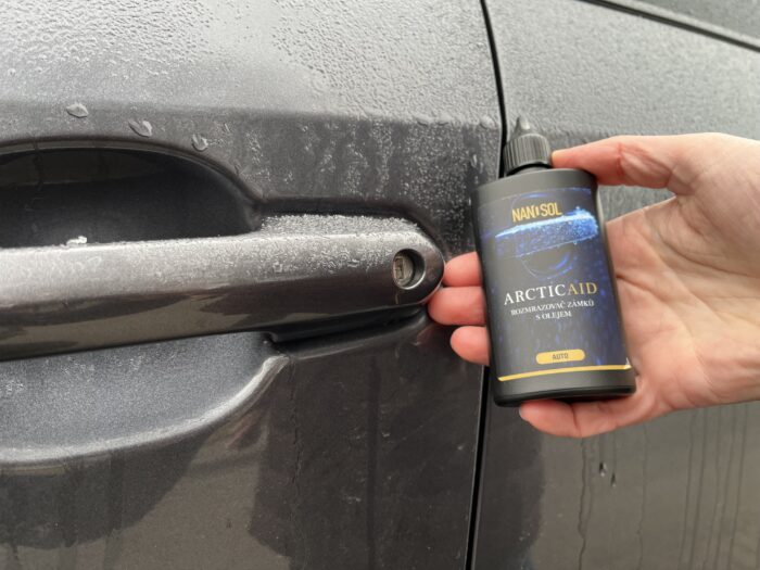 - Stačí nalít přípravek přímo na zamrzlý zámek, počkat několik sekund a pak už jen pohodlně otočit klíčem.