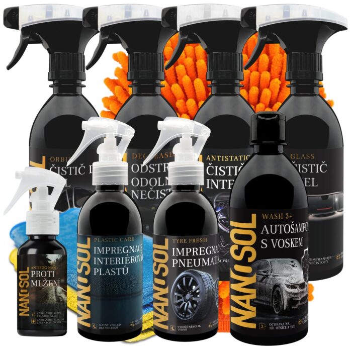Sada autokosmetiky na komplexní čištění auta, který je opravdu nabitý vším, co potřebujete pro dokonalou péči o váš vůz.