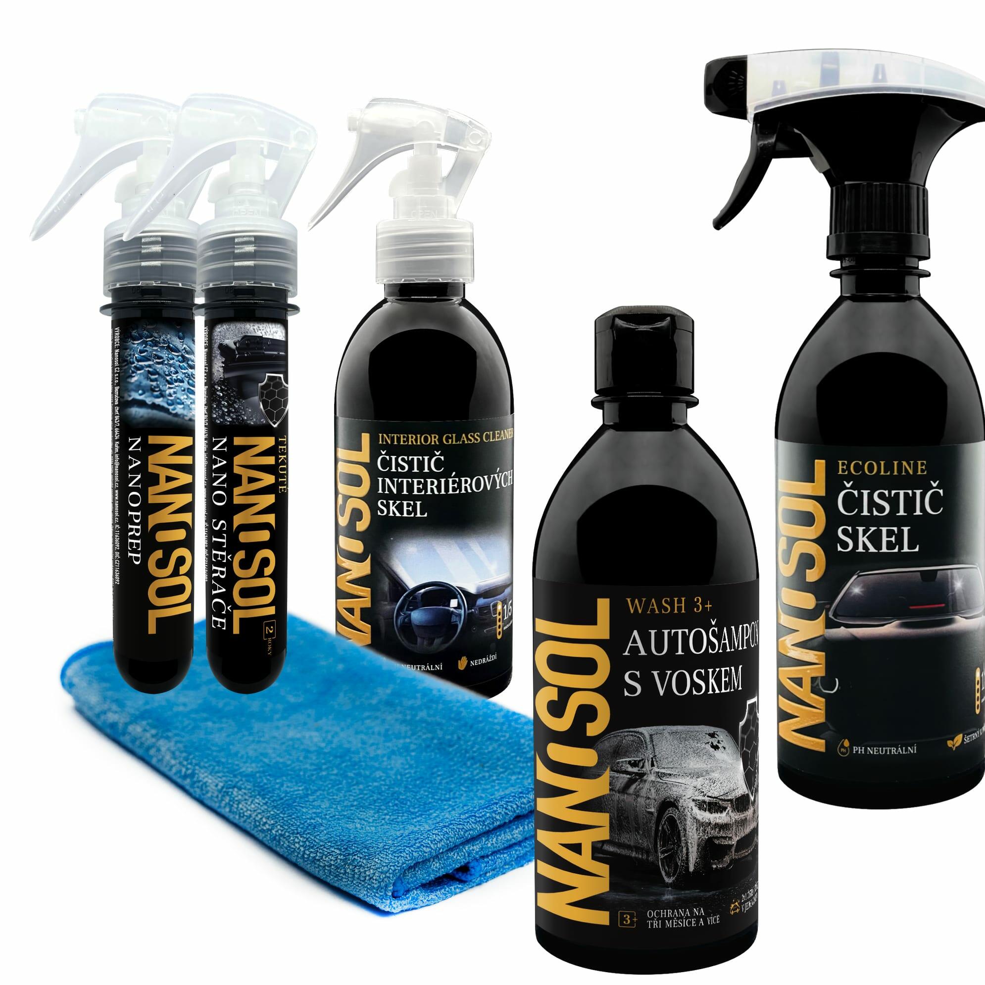Praktická sada autokosmetiky pro kompletní péči nejen o skla auta. A to jak zvenku, zevnitř a mysleli jsme i na brýle. Čistič skel ECOline usnadní práci s nečistotami na čelním skle….snadno jej zvenku vyčistí a beze šmouh. Jeho menší obdoba Čistič interiérových skel v kombinaci s Magickou utěrkou udělá radost v interiéru. Zajistí čistá skla zevnitř vozu. Navíc se svou velikostí pohodlně vejde do dveřní přihrádky každého auta. Nanostěrače zase usnadní jízdu ve špatném počasí. Přední sklo a světla pokryjí neviditelnou vrstvou, na které nečistoty a voda méně ulpívají. Takže při jízdě zvyšují viditelnost a lépe se sklo čistí. Auto v jednom kroku perfektně umyjete a zároveň ochráníte naším Šamponem s voskem.